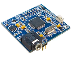 SYN6658を搭載した音声合成ユニット、適合言語:中国語、スタイル:男女5種類、通信インターフェース:USART/SPI、3Wパワーアンプ搭載:4〜8Ω、動作電源:3.3V、基板寸法:43.5x39mm、表記価格:1
