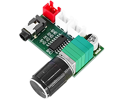 PAM8403を搭載した実装済みパワーアンプモジュール、最大出力:3W+3W、ステレオ、負荷:4〜8Ω、動作電圧範囲:5V、基板寸法:37x22mm、詳細資料が付いていないので掲載情報だけでご利用いただける方にお勧め、表記価格:1