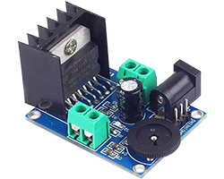 TDA7297を搭載した実装済みパワーアンプモジュール、最大出力:15W+15W、ステレオ、負荷:4〜8Ω、動作電圧範囲:6〜18V、基板寸法:45x33mm、詳細資料が付いていないので掲載情報だけでご利用いただける方にお勧め、表記価格:1