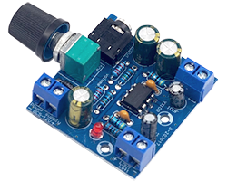 TDA2822を搭載した実装済みパワーアンプモジュール、YX103、最大出力:1.5W、モノラル、負荷:4〜32Ω、動作電圧範囲:5〜12V、基板寸法:47x43mm、詳細資料が付いていないので掲載情報だけでご利用いただける方にお勧め、表記価格:1