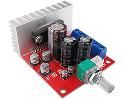LA4282を搭載した実装済みパワーアンプモジュール、最大出力:10W+10W、ステレオ、負荷:4〜8Ω、動作電圧範囲:12〜33VDC、9〜22VAC、基板寸法:50x50mm、詳細資料が付いていないので掲載情報だけでご利用いただける方にお勧め、表記価格:1