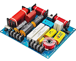 スピーカネットワーク、400W、低音・中音・高音の3ウエイ、接続:B=BASE(低音)、M=MEDIANT(中音)、T=TREBLE(高音)、高音出力保護素子PCT、基板寸法:156x135mm、表記価格:1