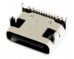 USBコネクタ、バージョン:3.1、TYPE-C、メス/レセプタクル、ボディ長さ(mm):6.5mm、接続方向:ライトアングル、実装タイプ:SMT + DIP、トップマウント、図面、表記価格:1販売単位