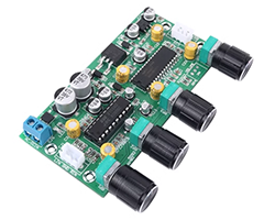 NJM2150+UPC1892Tを搭載した実装済みプリアンプモジュール、低音・高音・バランス・音量の調整、動作電圧範囲:12〜32VDC、10〜24VAC、基板寸法:100x50mm、詳細資料が付いていないので掲載情報だけでご利用いただける方にお勧め、表記価格:1