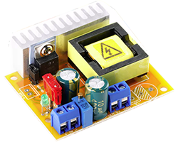 昇圧型電源モジュール、過電流・過電圧保護、短絡保護、入力電圧範囲:8〜32V、出力電圧調整範囲:45〜390V、動作周波数:75KHz、電力変換効率:MAX 88%、基板寸法:60x50mm、表記価格:1